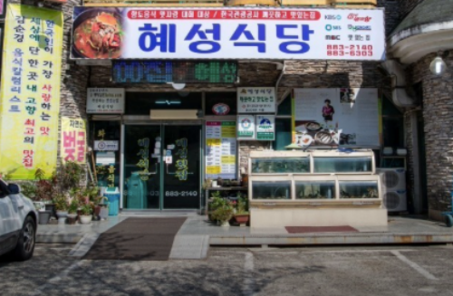 소개 : 재첩국과 은어, 참게탕을 전문으로 하는 혜성식당은 이미 많이 알려진 하동의 대표 맛집입니다. 특히 하동 향토음식인 참게가라장 맛이 일품이라고 알려져 있으니 하동에 놀러가신다면 꼭 한번 맛보시기를 추천드립니다. 이외에도 벚굴과 참게탕도 맛있다고 합니다. 미리 예약해서 방문가능하다고 합니다.