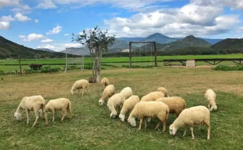 베트남 불교사찰인 포룡자라이 사원, 양떼목장에서 양들과 함께 놀 수 있습니다.