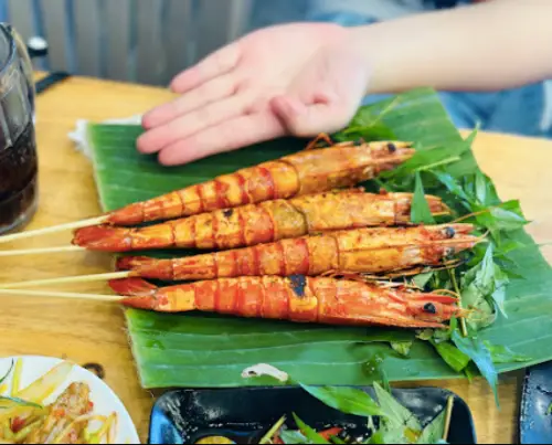 | HEM OC | 오징어 바베큐, 조개 바베큐, 해산물 볶음밥 | 오징어와 조개는 바베큐로 구워서 매운 소스에 찍어서 먹거나, 볶음밥과 함께 즐긴다. | 식당이 실외라서 에어컨 시설이 없다. 낮에는 덥고 밤에는 춥거나 벌레가 있을 수 있으니 적절한 옷차림과 모기약을 준비한다. 해산물은 협상할 수 있으니 너무 비싸게 주지 않는다. |