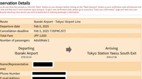 - 메인 페이지에서 Airport bus → other airports → Ibaraki Airport를 선택합니다.