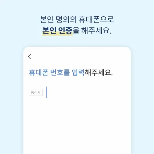 - 본인 명의 휴대폰으로 본인 인증을 합니다.