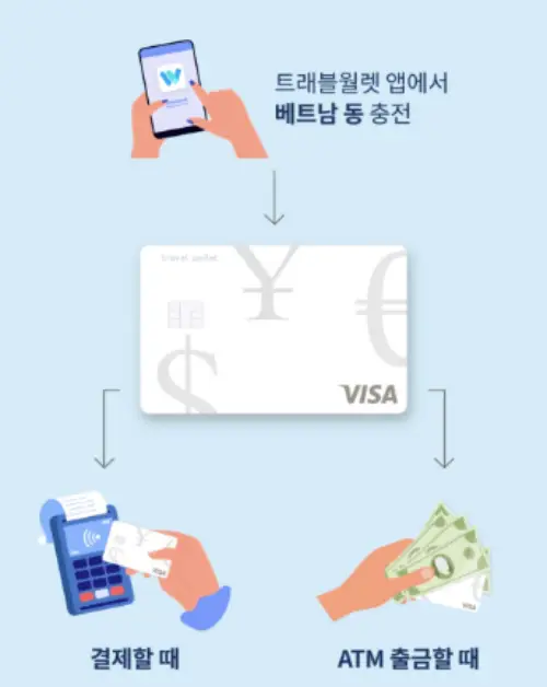 | 전 세계 VISA ATM에서 출금 가능 | 트래블월렛 앱을 통해서만 이용 가능 |