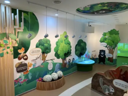 하늘다람쥐의 사라진 도토리를 찾는 과정에 참여하며 생물을 이해할 수 있는 체험 공간입니다.