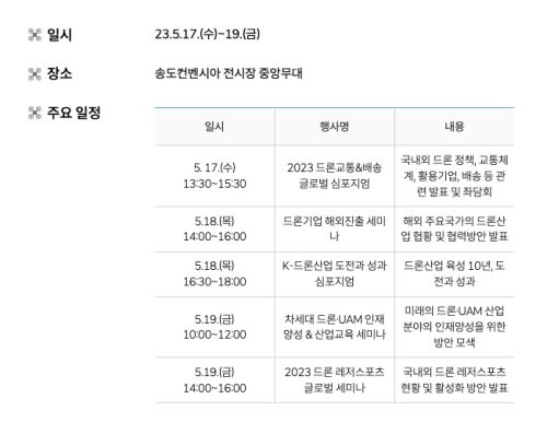 2023 대한민국 드론 UAM 박람회 전체일정표 보러가기