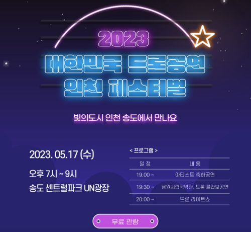 5월에 인천 송도에는 2023 대한민국 드론 UAM 박람회와 드론쇼가 펼쳐집니다.