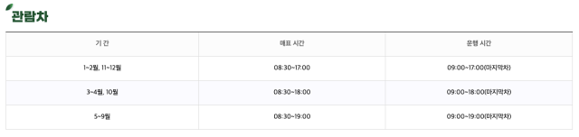 - 기상 여건 등 사정에 따라 입장시간이나 폐장시간이 변경될 수 있습니다.