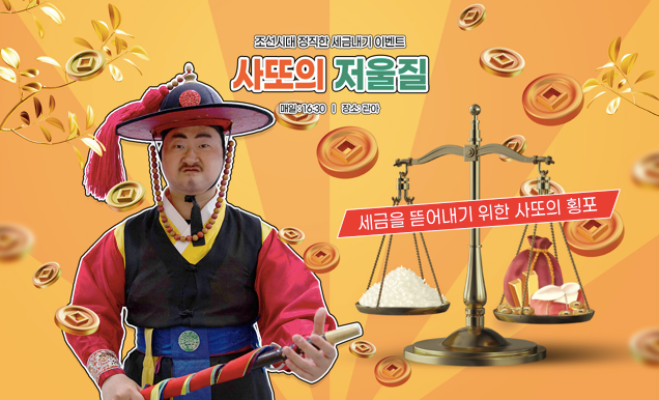 사또의 저울질은 사또와 함께 저울을 활용해 물건의 무게를 맞추는 흥미진진한 시험입니다. 시험에 통과하면 기념품을 받고, 실패하면 벌칙을 받습니다. 행시기간동안 관아에서 진행됩니다.