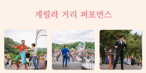 가수 백지영, 울산시립교향악단의 개막행사를 시작으로 정동하, 왁스, 이현, 박창근, 박학기, 서도밴드, 유리상자, 금난새, 뉴월드 챔버오케스트라 등 매일 유명 아티스트들의 화려한 공연이 펼쳐집니다. 자세한 공연 일정과 장소는 아래 '장미축제 공연일정 / 출연 아티스트'을 클릭해서 확인하실 수 있습니다.